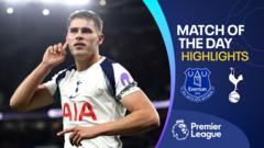 Tottenham inflict Everton's first defeat at their new Hill Dickinson Stadium as they win 3-0 with two goals from Micky van de Ven and a late header from substitue Pape Matar Sarr.